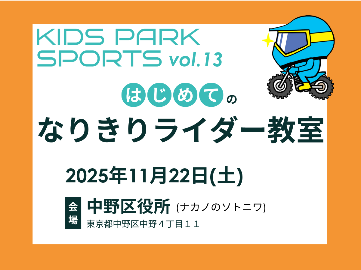 2025年11月22日(土) 10:00 【東京都中野区】2025年11月22日(土)KIDS PARK SPORTS(はじめてのなりきりライダー教室/中野区役所(ナカノのソトニワ) -