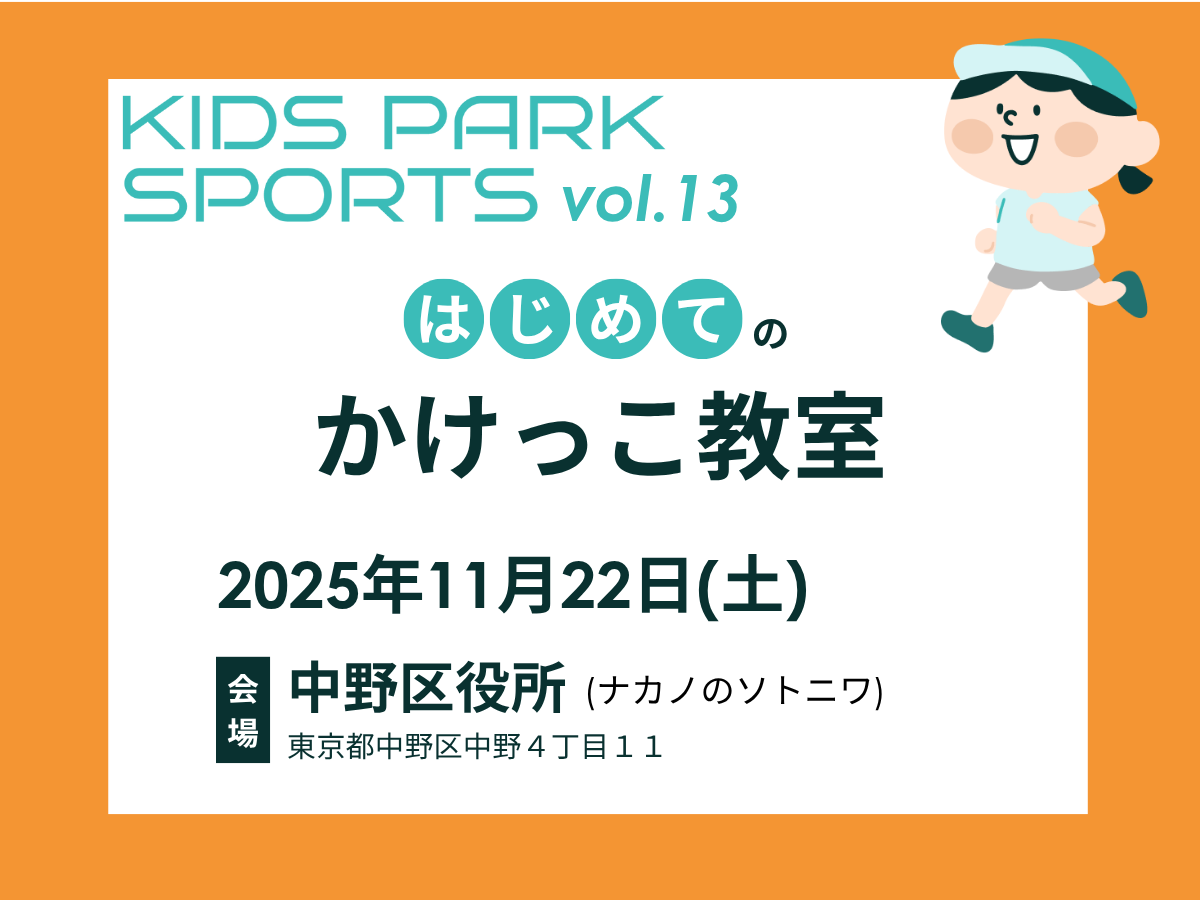 2025年11月22日(土) 10:00 【東京都中野区】2025年11月22日(土)KIDS PARK SPORTS(はじめてのかけっこ教室/中野区役所(ナカノのソトニワ)) -
