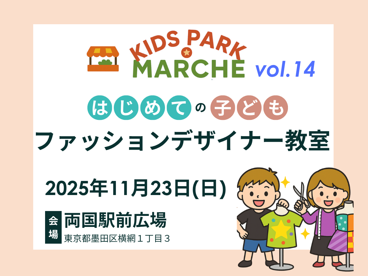 【東京都墨田区横綱】2025年11月23日(日)KIDS PARK MARCHE(はじめての子どもファッションデザイナー教室/両国駅前広場/両国駅広小路)