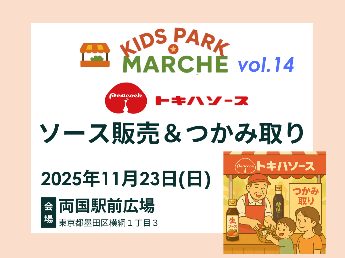 【東京都墨田区横綱】2025年11月23日(日)KIDS PARK MARCHE(トキハソース/両国駅前広場/両国駅広小路)
