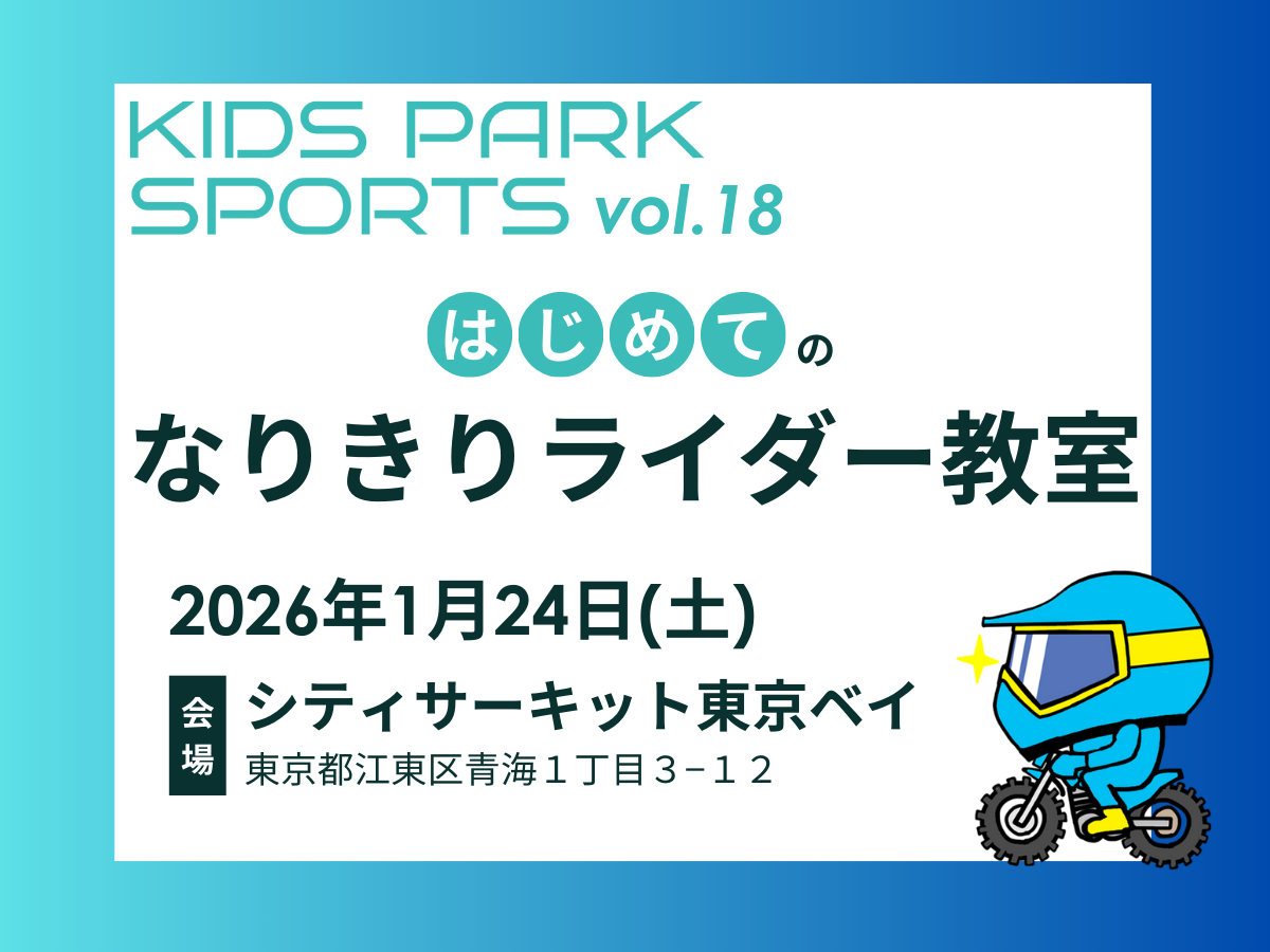 【東京都江東区青海】2026年1月24日(土)KIDS PARK SPORTS(はじめてのなりきりライダー教室/シティサーキット東京ベイ)
