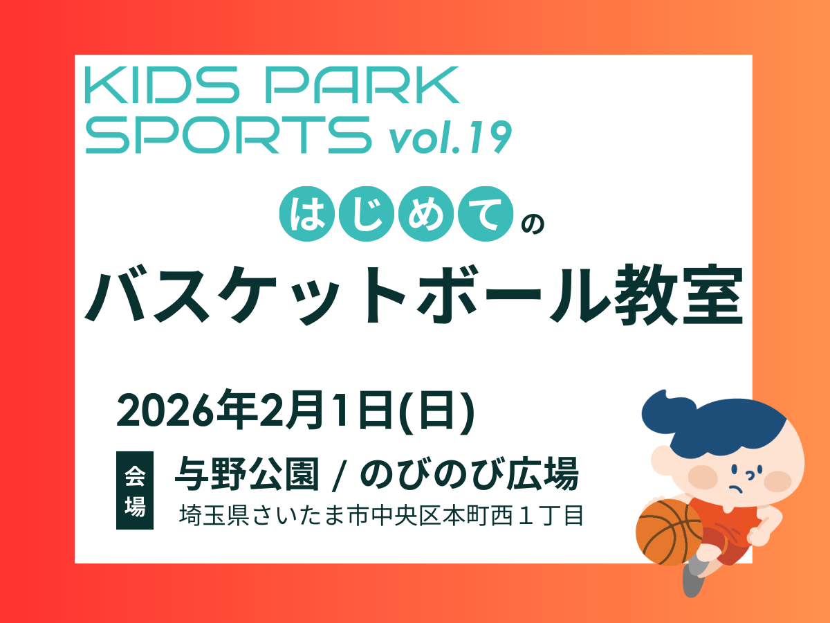 【埼玉県さいたま市中央区】2026年2月1日(日)〜はじめてのバスケットボール教室〜KIDS PARK SPORTS Vol.19 (与野公園/のびのび広場)