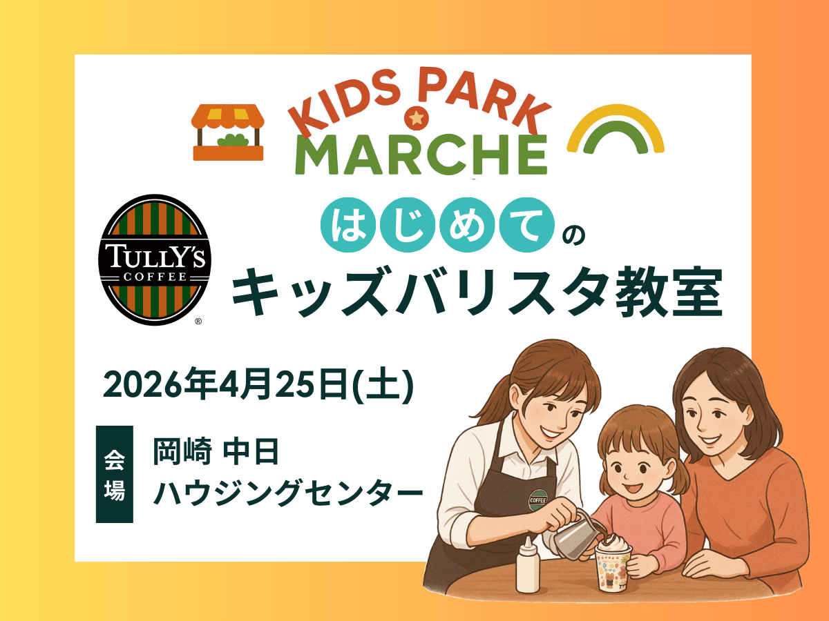【愛知県岡崎市昭和町】2026年4月25日(土)KIDS PARK MARCHE Vol.24〜タリーズコーヒーはじめてのなりきりカフェ店員さん〜(岡崎 中日ハウジングセンター)